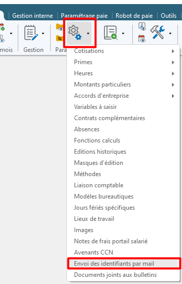 Dans cette situation, se rendre dans un premier temps dans le menu Paramétrage du dossier, puis cliquer sur Envoi des identifiants par mail :