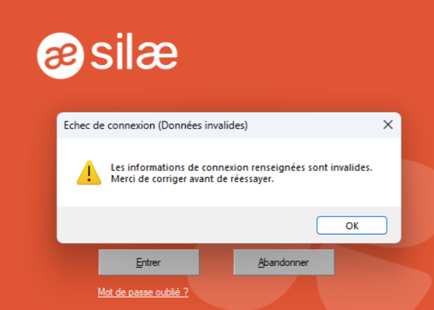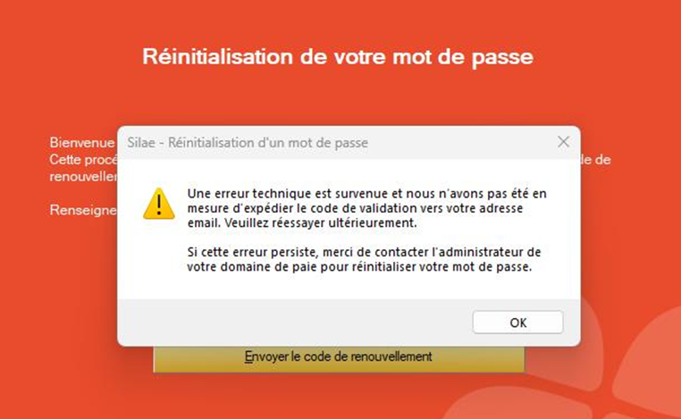 Si le message d'erreur se produit sur des postes et des environnements différents, écrire à l'assistance Silae.