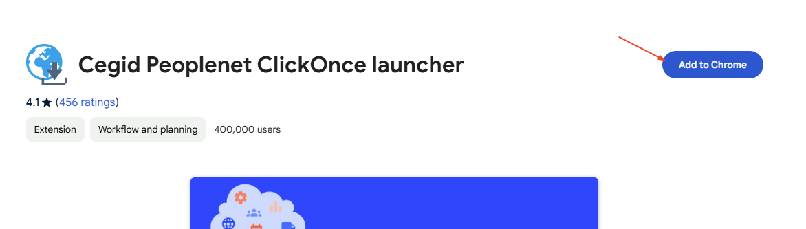 En dernier recours si cela ne fonctionne toujours pas, installer l'extension Cegid Peoplenet ClickOnce launcher sur les postes qui posent problème. Pour ce faire, cliquer sur le lien suivant : Cegid Peoplenet ClickOnce launcher - Chrome Web Store