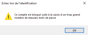 - La connexion est bloquée suite à de trop nombreuses tentatives erronées (mauvais identifiants ou mots de passe).