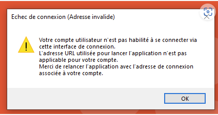 Lorsque le message d’erreur ci-dessous apparait, le problème provient de l’identifiant :