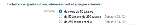 Ainsi, pour le forfait social sur l’épargne, le champ dédié dans la fiche Société pour le définir se trouve dans la section Social et fiscal :