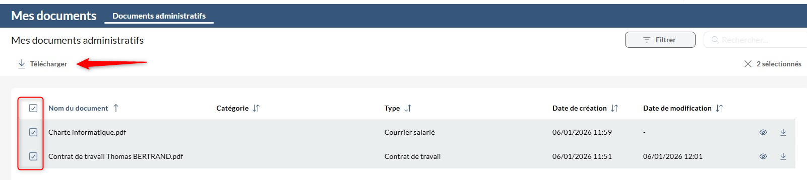 📌 Il est également possible de sélectionner un ou plusieurs documents et de le/les télécharger au format ZIP :