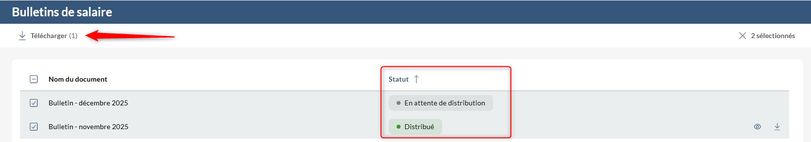 📌 Il lui est également possible de sélectionner un ou plusieurs bulletins et de le/les télécharger au format ZIP :