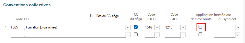 - Soit cocher la case "Application immédiate des avenants" dans la fiche Société :