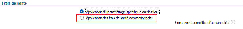 - La case "Application des frais de santé conventionnels" a été décochée dans la fiche Société :