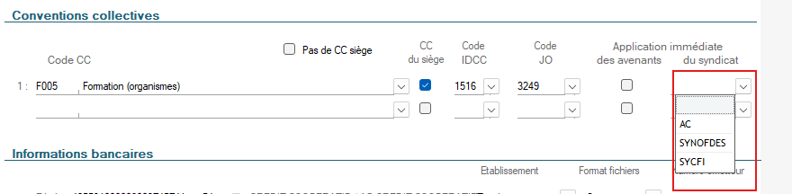 - Soit renseigner un syndicat dans la fiche Société (pour les CCN où nous les proposons) :