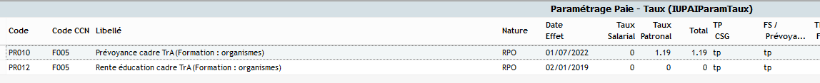Vérifier dans le menu Paramétrage > Cotisations > Taux