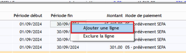 - Insérer une ligne de régularisation pour chaque mois sur le bulletin du mois en cours, en associant bien chaque ligne à la période concernée.