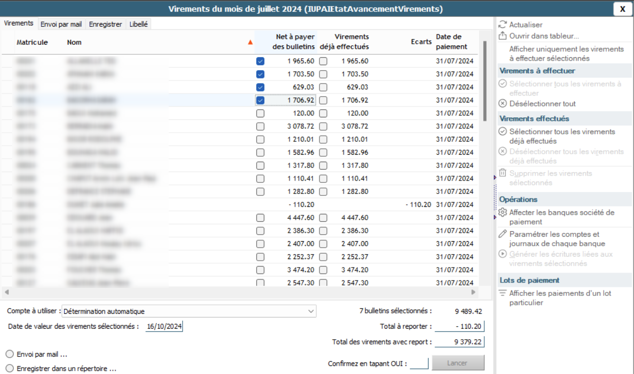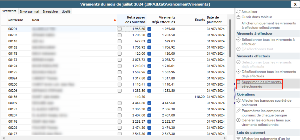 - Code Fonction : PARAMSVIREMENTS ;