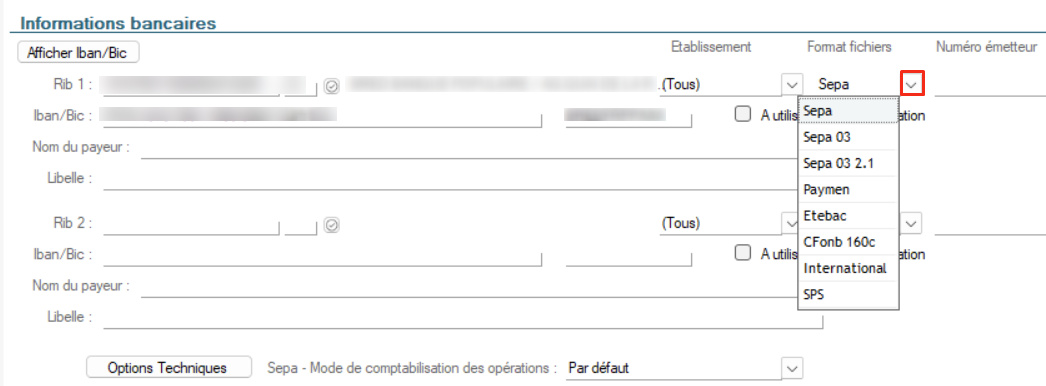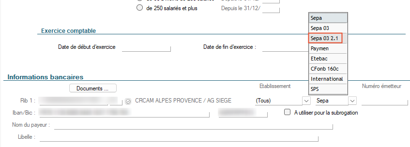 Il est recommandé de sélectionner les formats de fichiers SEPA 03 ou SEPA 03.2.1 dans la fiche Société :