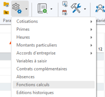 Une fonction calcul est disponible afin de personnaliser cette balise et modifier l'ID du fichier SEPA. Se rendre dans le menu Paramétrage > Fonctions calculs :